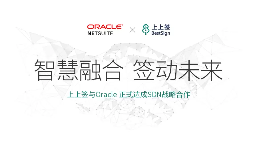 2018年10月,中国电子签约领跑者上上签与全球领先的企业云服务提供商甲骨文达成中国电子签约领域的战略合作。上上签正式成为Oracle NetSuite专注构建的SuiteCloud Developer Network (SDN) 生态战略中的重要一员,将强大的电子签约服务能力赋能Oracle SuiteCloud平台,联手打造端到端的一体化方案,加速推动中国企业智慧升级。