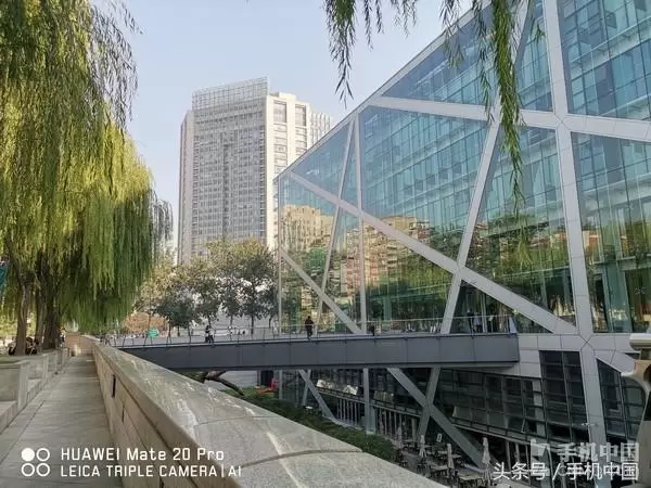 接下来我们看看室外晴空下的表现。华为Mate 20 Pro表现依旧可圈可点,无论是近处大理石的反光、亦或是远处高楼玻璃窗的细节,都十分清晰。