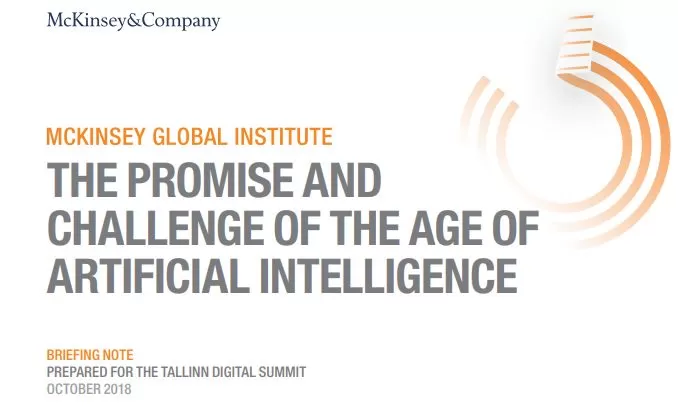 2018年10月,麦肯锡发布报告《The promise and challenge of the age of artificial intelligence》(人工智能时代的承诺与挑战)。本报告汇集了麦肯锡全球研究院对人工智能(AI)技术及其用途、局限性和影响的各种研究结果。报告总结了面对人工智能,政策制定者和商业领袖需要解决的一系列问题,以缓和过渡过程中伴随其采用可能带来的破坏性。