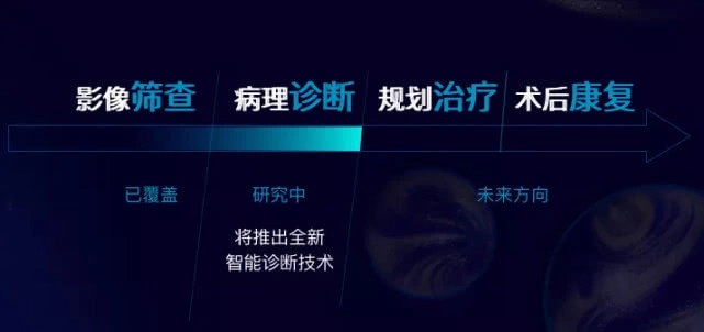 一般诊断流程有四步,包括:医疗影像筛查、病理分析、规划治疗和术后康复与追踪。大部分公司都在做医疗影像,和医生用的智能辅诊系统。