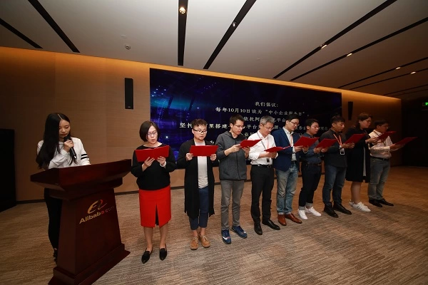 会上,阿里巴巴1688,阿里巴巴国际站外贸服务市场、阿里巴巴全球速卖通服务生态市场、阿里巴巴零售通开放平台共同倡议,每年10月10日设为“中小企业服务日”, 依托阿里巴巴平台,坚持“阿里搭建平台、平台集聚资源、资源服务企业”的理念,利用企业间交互网络服务(BNS)为企业构建一个全链路生态一站式服务平台,实现资源共享,信息共享,互惠互利,共同发展,促进中小企业可持续健康发展。
