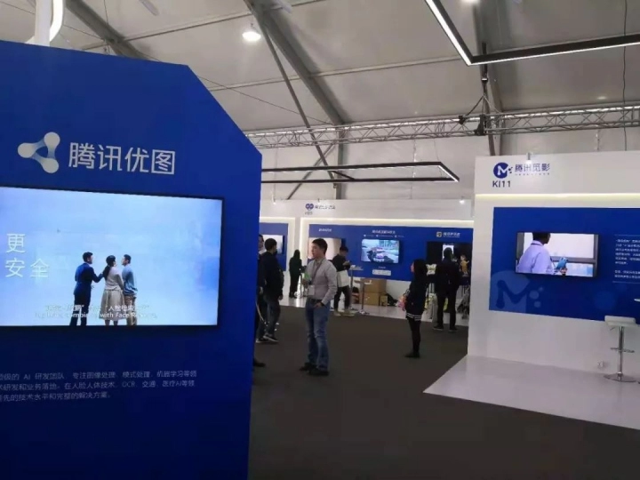 与去年一样,腾讯 AI Lab、腾讯优图、微信智聆(WeChat AI)依然出现在了今年腾讯合作伙伴大会科技展厅里的显眼位置。