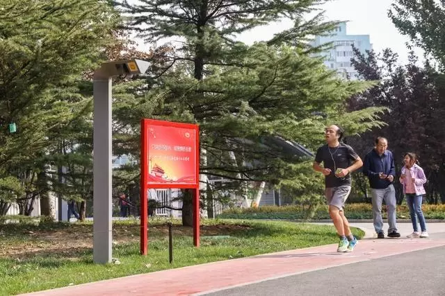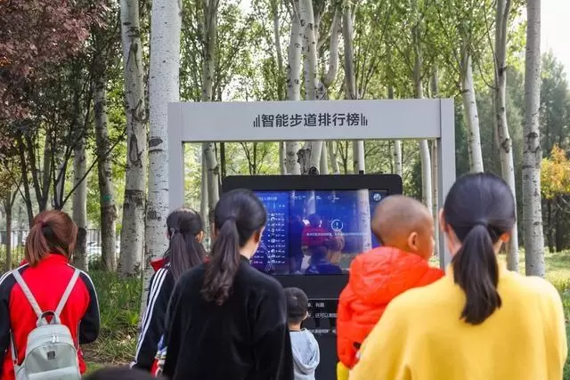 在海淀公园环形跑道路边的不同地点,百度设置了人脸识别杆,形成了“智能步道”。完成注册后,公众无需佩戴硬件设备,在步道内进行运动即可实现通过百度人脸识别技术自动记录运动数据。终点处还设置智能步道排行榜,刷脸后就能看到单圈最快速度、累计运动时长、累计运动里程排行榜等数据。