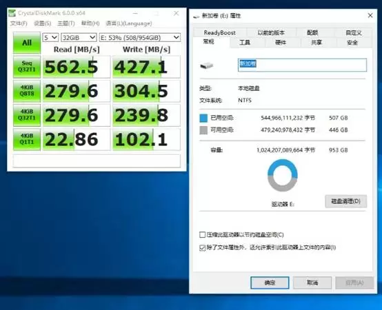 CrystalDiskMark的读写测试结果也是与此前空盘相差无几。