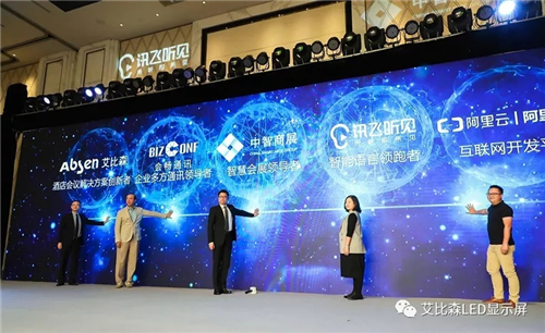 2018年10月31日,由艾比森、阿里云物联网、中智商展、会畅通讯和讯飞听见五家公司联合举办的以“大道智简”为主题的MICE+AI智慧会展发布会在上海苏宁宝丽嘉酒店盛大举行,五家公司联合推出的MICE+AI解决方案宣布正式启动。文化旅游部、科技部、人力资源和社会保障部等领导,辉瑞、IBM、罗氏、诺华、平安集团、友邦、阿斯利康、赛诺菲、奔驰、上海电气、默沙东、通用电气、美团、百胜等企业客户,及万豪酒店集团、洲际酒店集团、凯悦酒店集团、雅高酒店集团、万达酒店集团、凯宾斯基酒店集团等合作伙伴代表300余人,一起见证了MICE+AI的启动。MICE是会议、活动、展览、奖励旅游几种业态的统称,在中国拥有万亿级市场体量。此次不同领域的五家巨头跨界联手,给中国MICE市场带来了务实可行的技术升级路线,及迭代创新的服务体验,会议被重新定义。