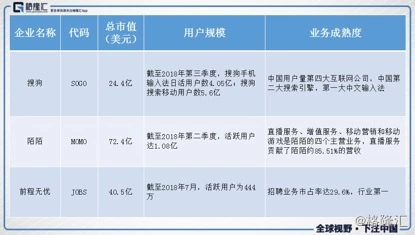 截至11月2日,搜狗的市值为24.4亿美元,陌陌、前程无忧的市值分别为72.4亿、40.5亿美元。搜狗搜索移动用户数5.6亿,搜狗输入法日活达4.05亿。与搜狗与陌陌、前程无忧等美股科技股对比,搜狗的用户规模远远高于他们,但市值却低了很多。