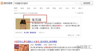 以用搜狗搜索“中国最丑的皇帝”为例,搜狗会直接给出答案为朱元璋,而不是给出10条检索结果。