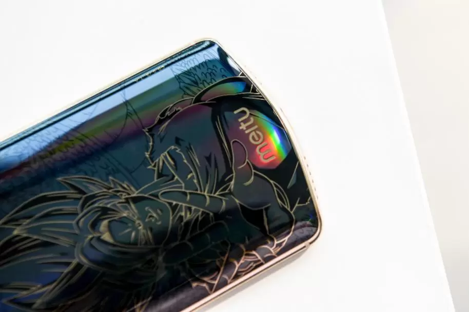看了这么多,接下来才真正的说到此次开箱真正的主角--美图T9七龙珠限量版。经小编了解,美图T9七龙珠限量版的手机背壳设计工艺是几款动漫限量版手机中最复杂的一款,虽然手机机身以黑色为主,但五彩斑斓的镭射效果和镶嵌在北部的一个悟空形象给人以极强的视觉冲击,经典又酷炫。