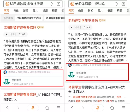 (图:搜狗律师在搜索结果页提供的权威解答)