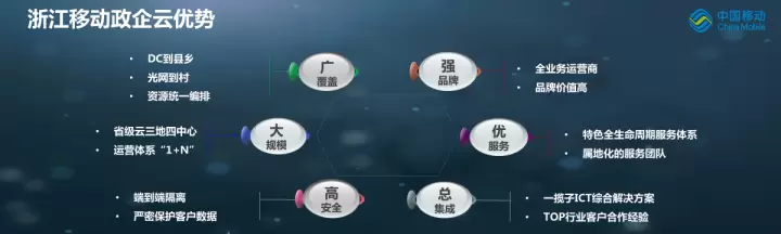 浙江移动政企云优势较多,归结为:“广优高总强大”,本次百尺竿头更进一步,与华为公司强强联合,合作研发“云网智联”创新解决方案,包括云连接、云加速、云防护3款产品,在世界互联网大会上面向行业隆重发布。