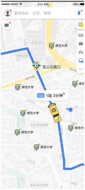 用户进入高德地图,点击右上角切换按钮,开启公交雷达,即可查看附近所有公交车站信息。活动期间,公交站牌和公交车辆上都将出现小黄人的形象,公交雷达可以显示公交车辆的实时位置、预估到达下一站的时间,精准至分钟级,用户可以根据预估,合理安排出行时间。天气转冷,用户再也不用在公交车站苦等。