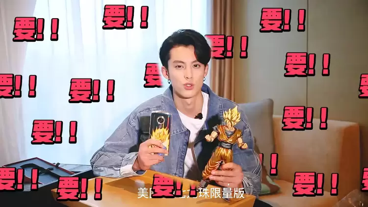 非常喜欢《七龙珠》的王鹤棣,收到的是美图T9七龙珠限量版。一打开包装,机身酷炫的“五彩斑斓黑”立马就吸引到了王鹤棣,专为限量版设计的专属UI主题也收到好评。手机壳的设计也非常有小心机,壳上图案是悟空的赛亚人形态,带上手机壳,你的悟空就瞬间变身!