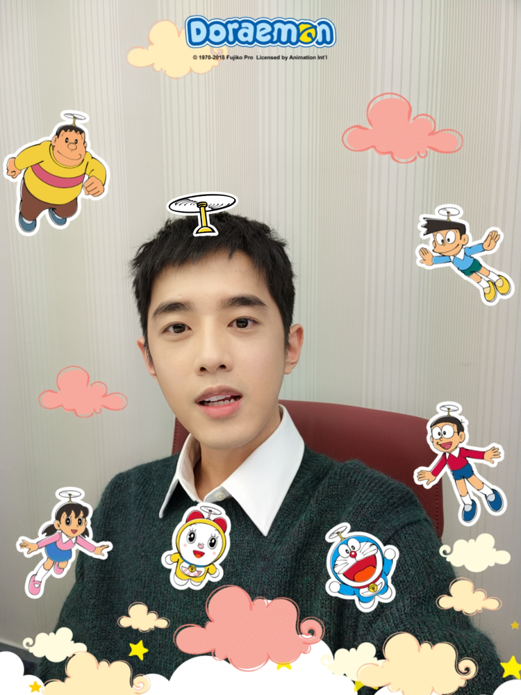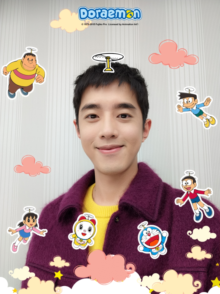 拆开礼盒,梁靖康迫不及待直奔手机而去。惊讶于手机壁纸、UI都有哆啦A梦的元素,梁靖康一边刷着手机一直大呼“可爱”,就连手机机身背后指纹识别器上专门设计的哆啦A梦,也被他发现,看来真的是个超级哆啦A梦迷呀!随后,他打开了哆啦A梦专属AR特效拍照功能,进入了自拍模式。