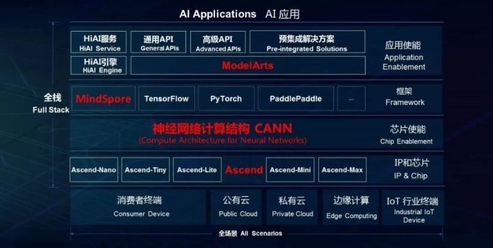 今天是一个新的起点,我们发布了全栈全场景的AI解决方案。全栈意味着为AI应用开放者提供强大的算力和开发平台,全场景意味着能实现智能无所不及。我们致力于提供用得起、用得好、用得放心的AI,实现普惠AI。