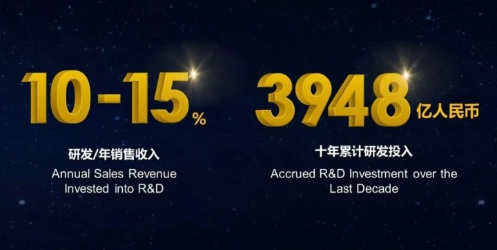 我们每年坚持将销售收入的10%-15%投入研发,在过去的10年间,华为累计研发投入接近4000亿元人民币,而今年一年的研发投入就将达到1000亿人民币的量级。