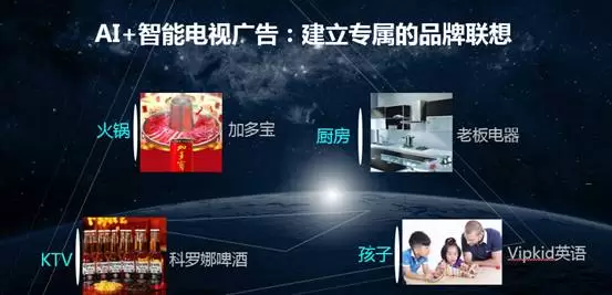 AI+智能电视广告的核心优势是帮助品牌建立专属的品牌联想度。随着场景化营销的升级,大家总是在特定场景里想到特定品牌产品。比如:大家在吃火锅的时候会想到“怕上火喝加多宝”;进入厨房时想起老板电器;在KTV娱乐时,想起科罗娜啤酒;看到孩子的瞬间想起了Vipkid英语教育。AI+智能电视广告就是让越来越多的品牌在特定场景里被消费者想起,进而刺激消费转化。