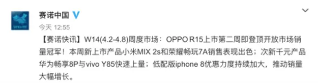 除了中关村在线的数据,最近今日头条联合京东发布手机的新品季数据快报显示,OPPO R15的热度同样排名第一,成为头条“最热”手机。