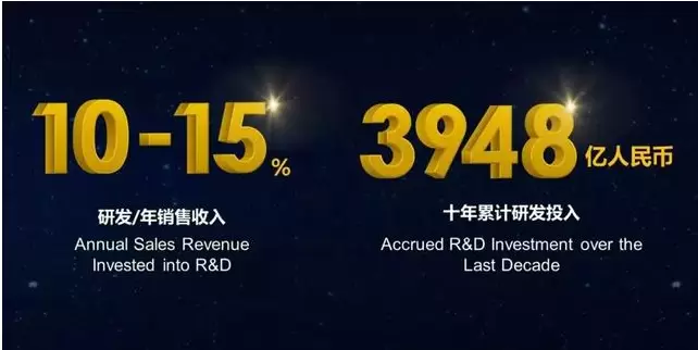 新技术需要长期持续的投资。重视基础研究和人才培养,在战略方向上压强投入,是华为创新与发展的基石。我们每年坚持将销售收入的10%-15%投入研发,在过去的10年间,华为累计研发投入接近4000亿元人民币,而今年一年的研发投入就将达到1000亿人民币的量级。