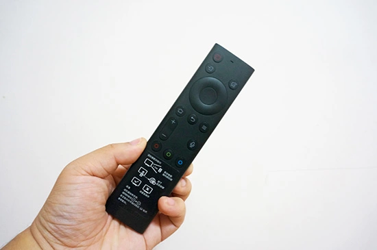 遥控器采用简约式设计,主要就是方向、返回、确定、声音控制等按键,操作起来非常方便,即便是老人和小孩,使用也毫无压力,而且支持语音操控,不夸张的说,基本上所有操作都可以通过语音来完成,甚至不用按键,这个笔者后文会详细介绍。
