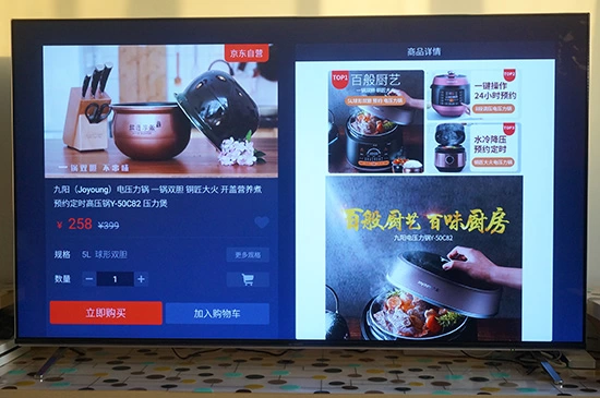 此外,65H9S也是创维与京东智能深度合作的产物,我们在一遍享受大屏观影乐趣的同时,还可以轻松下单购买屏幕上的同款,这个功能其实笔者是有点排斥的,本来钱包就不厚,以前心动后还可以节制一下,现在做不到了,因为太方便,总之这个功能笔者是绝对不会介绍给女朋友知道的。