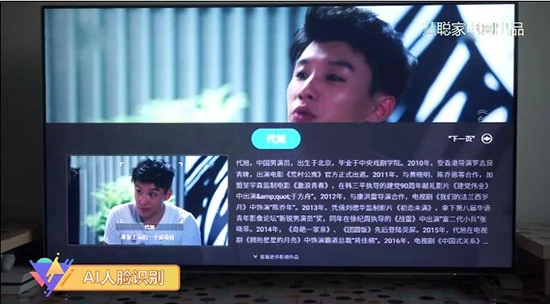 还有一个非常实用而且先进的功能,就是面部识别,我们在看电视的过程中,经常会看到那种脸熟但叫不上名字的演员,这时想找他们的其他影片更是天方夜谭了,65H9S支持面部识别,当画面上出现人物时,你只需要问它这是谁,65H9S秒速就可以给出这个演员的百科,这才是真AI。