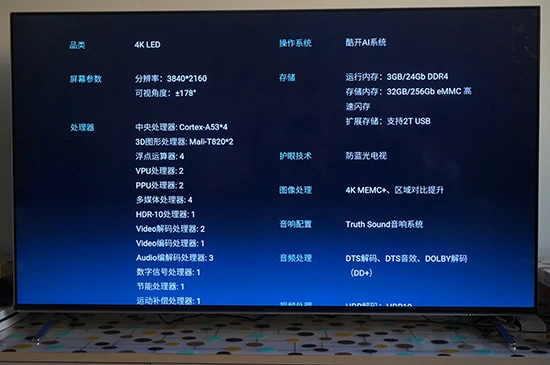 最后,我们来看下这款电视的硬件配置,它采用3+32G大内存,正是如此强悍的硬件配置,确保了65H9S的超高速运行,在操作时基本无任何的卡顿。