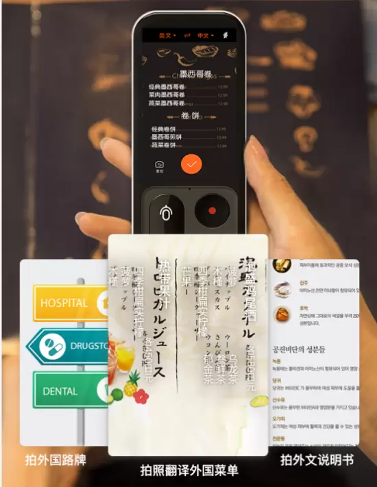 口语翻译解决了听说问题,在图文翻译上,准儿翻译机支持全球15种语言的相互拍译,其中,竖版日文的OCR拍译是独家功能。