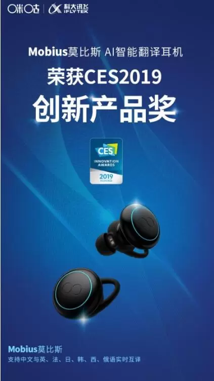 北京时间2018年11月9日,莫比斯AI智能翻译耳机荣获CES2019创新产品奖。这款由咪咕灵犀和科大讯飞联合推出的智能耳机主打智能翻译功能,从众筹阶段开始,就获得了行业内外的广泛关注。