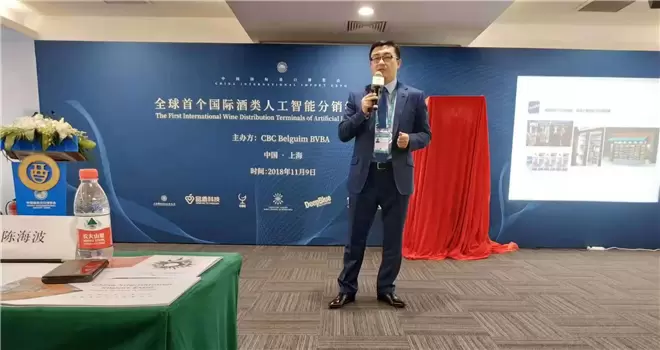 11月9日,人工智能独角兽深兰科技应邀参加进博会上比利时和中国的合作项目,深兰科技董事长兼CEO陈海波现场在全球首个国际酒类人工智能分销终端发布会现场上发布了一款新的人工智能酒柜。
