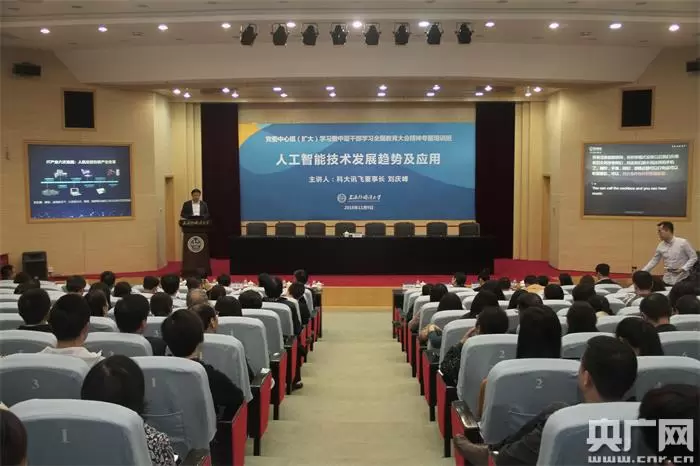 科大讯飞董事长刘庆峰在上海外国语大学为党委中心组做“人工智能技术发展趋势及应用”专题报告。(央广网发 上海外国语大学 供图)