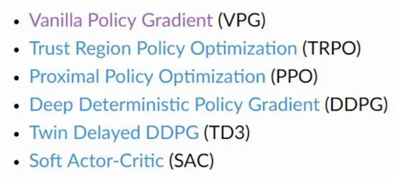 Spinning Up 收录的算法。