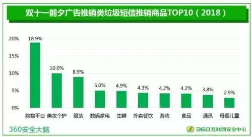 双11前后,360互联网安全研究中心统计的《双十一网购安全生态报告》数据显示,垃圾短信“双十一”特征明显,暗藏诈骗风险。双11前夕,360手机卫士日均拦截垃圾短信1642.3万条,绝大多数为购物推广,面膜、手机、大闸蟹等都是热推产品,同时“红包”、“旗舰店”、“狂欢节”等“双十一”相关词汇成为热词。很多垃圾短信存在不明链接,并含有加“QQ”、“微信”等信息,暗藏诈骗风险。其中,用户收到的垃圾短信绝大部分是商家或各购物平台的推广信息,占比达到97.1%,其他推广占比1.7%,而带有明显诈骗性质、以购物为名要求“加微信”的,占比达到1.2%,需要用户警惕。用360防骗高手2.0语音防诈骗功能收入语音防诈骗语音库,能有效防范网购诈骗。