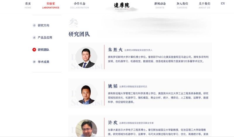 今年9月,阿里达摩院官网上线。根据官网介绍,决策智能实验室是隶属于机器智能研究领域,后者是达摩院五大研究领域之一;其中,决策智能实验室主要的研究方向包括机器学习和运筹优化;产品为“达灵”计算资源优化、“微灵”模型压缩与端上智能、“龙灵”零售个性化流量优化。