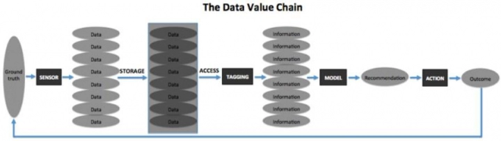 在所有的数据价值链中,任何传感器(无论是物理设备还是人类)在收集原始数据时,首先需要捕捉对现实的观测。在这种情况下,数据采集的成本将来自于传感器的创建、分配和操作。如果该传感器是一种硬件,企业必须考虑材料和制造的成本;如果传感器是人,则成本来自于人员的招募以及提供他们制作和记录观察结果所需的工具。根据覆盖范围的不同,企业可能需要支付大量的费用来分布传感器。不仅如此,在某些用例中还可能需要进行高频率的数据收集,这也可能会增加人工和维护成本。例如,受众测量公司尼尔森(Nielsen)就需要承担上述所有成本,因为它既提供收视率收集盒,也需承担获取参与者电视节目观看情况的许可费。这样一来,随着覆盖范围越来越广泛,尼尔森的数据就越有价值,规模经济也就自然而然降低了单位数据采集成本。