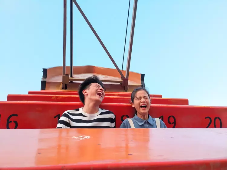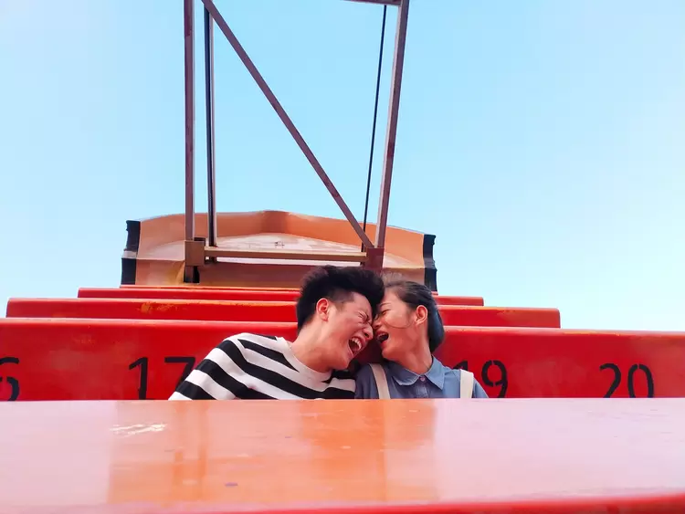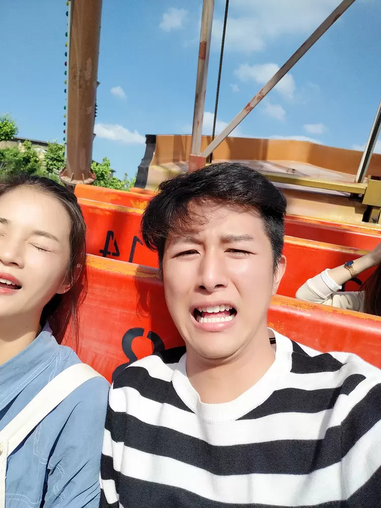 在全程喉咙喊破天、心脏蹦蹦跳、双手双脚全身紧绷的海盗船上,要想拍出高成片率的照片实属不易,但是美图T9幻彩版做到了,让我们看看故明和七七拍出的照片。
