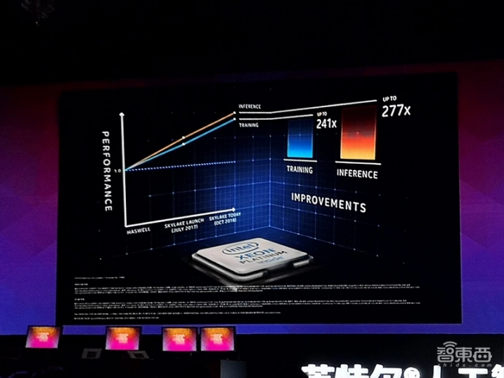 Naveen Rao说,在几年前,Xeon系列芯片不是专门为了AI而生的,但是随着英特尔对于人工智能的不断投入演进,Xeon系列在AI训练能力上有了241倍的提高,在AI推理性能上,有倍的277倍的提升。