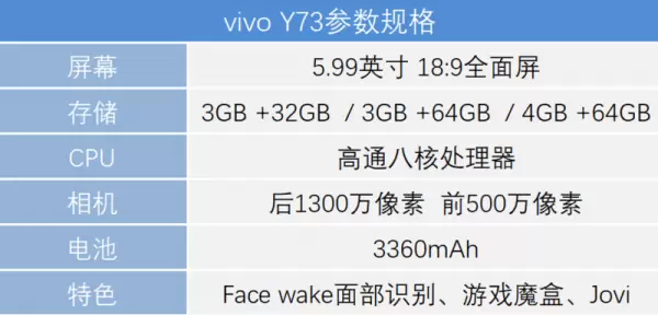 在开始体验之前,先来简单了解一下vivo Y73的基础信息。单从账面上来看,5.99寸全面屏、Face wake面部识别、全新的电竞模式2.0、AI美颜自拍等看点应有尽有,对于一款仅售799元起的手机而言,确实可圈可点。