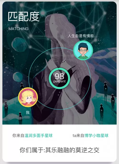 简单来说,soul app的智能匹配社交是基于大数据下的模型结果,匹配给你行为方式和价值体系与你相似的陌生人。满足社交需求的同时,在高质量持续性的沟通输出下,你们可能会产生更多其他关系,比如朋友,比如爱人。