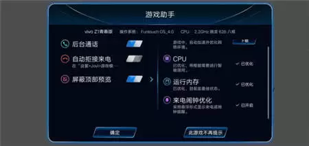 在游戏过程中,为了让玩家获得更加沉浸的游戏体验,vivo Z1青春版提供了游戏免打扰模式,在打开游戏界面时,会自动弹出游戏助手,只需要根据自身需要设置,就可以屏蔽第三方应用通知,重要来电横幅显示,防止消息弹出中断游戏操作,享受更加专业和专注的游戏体验。
