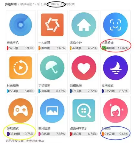AI美颜是排名第三的功能,得票数为9.66%。AI美颜受用户喜爱也是在意料之中,拍照和自拍已经成为用户使用手机产品不可缺少的环节,用得多自然感受明显,升级Flyme7之后相信很多用户都会觉得AI美颜很给力。