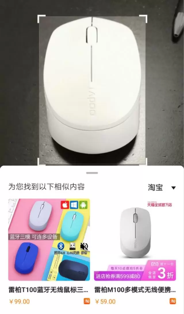 YOYO还能够通过摄像头对物体进行识别。比如说,如果你看到一个好用的鼠标,想要到淘宝上买,就可以通过YOYO来进行识别,还能比较一下哪家店的价格比较低。