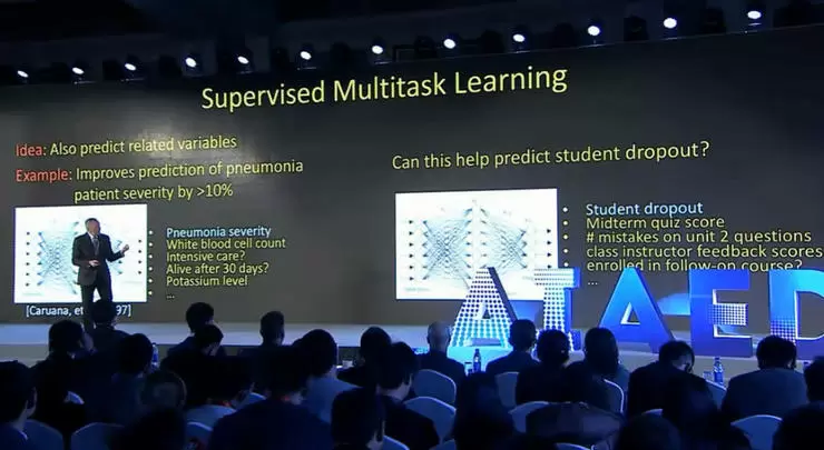 这是 20 世纪 90 年代末提出的学习理论,要想提升系统预测的准确度,就要将其他变量也一并考虑进来。比如说监测哪个肺炎病人的病情将会恶化,除了肺炎本身的严重程度,我们还会一并考虑病人的白细胞数量、是否曾经转入 ICU 治疗等等,通过这种方式来更好地预测病人肺炎恶化的几率。同样的模式运用到学生的退学率预测上,我们可以将学生的其他变量如期终考试成绩等一并考虑进来。