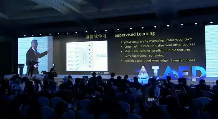 我们发现这种方式比传统的教学更加有效,然而只有人工智能技术发展到一定程度,我们才能实现这种教学。