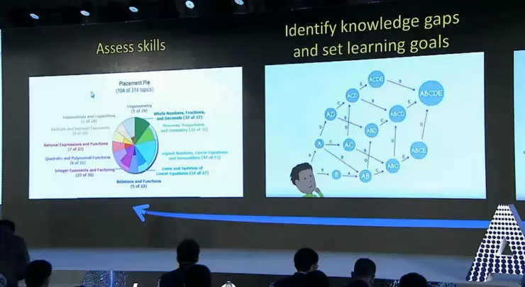 YouTube 上截取的这几张图片告诉我们什么是自适应学习。在自适应体系中,老师会不断地评估学生的能力、发现他们的不足点、给他们设立目标、发掘他们的学习需求,甚至根据他们的学习速度来提供更好的建议。我们发现已经有系统开始在做这件事情,然而都处于早期阶段,我们接下来的工作重点应该更多放在系统改善上。