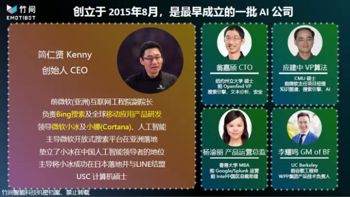 翁嘉颀 Phantom Weng:竹间智能 CTO,作为 AI 领域的技术专家,他带领团队负责竹间在 AI 领域产品研发与技术规划,领域主要涵盖对话机器人、计算机视觉、金融科技等领域。此前,翁嘉颀在中国大陆及台湾的多个科技类创新企业担任 CTO、首席架构师等职位,带领团队进行 AI 及大数据领域的研究开发。他毕业于台湾大学资讯工程学系,此后就读于纽约州立大学。熟悉算法、编程语言、搜索引擎、网络安全以及邮件安全,使用过的语言超过 35 种。