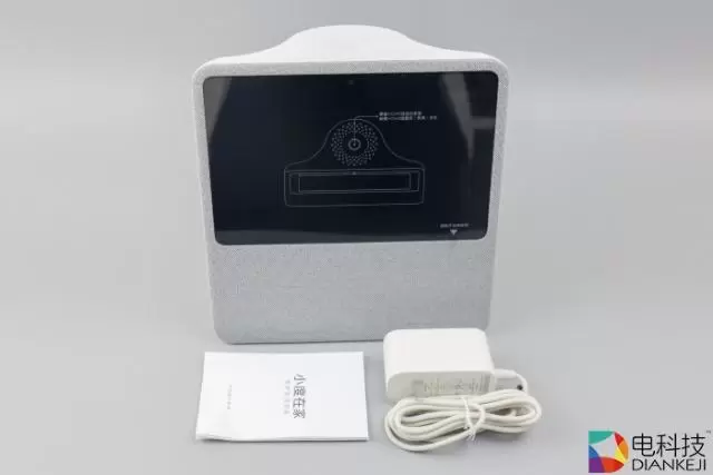 打开小度在家包装盒可以看到里面产品清单,电源线、使用说明书以及小度在家本尊。