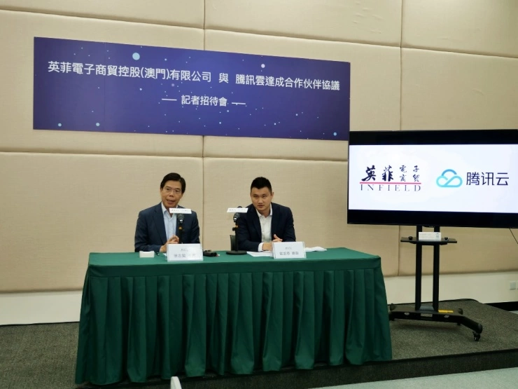 11月12日,英菲电子商贸控股(澳门)有限公司(以下简称英菲澳门)与腾讯云达成合作伙伴协议,并于澳门青年创业孵化中心召开记者招待会,公布首个落地项目,深度挖掘腾讯大数据资源,启动智慧旅游项目“一部手机游澳门”。英菲主席徐志贤、总裁霍丞恩主持并介绍项目进展。发布会吸引了包括澳门日报、力报等众多媒体到场。