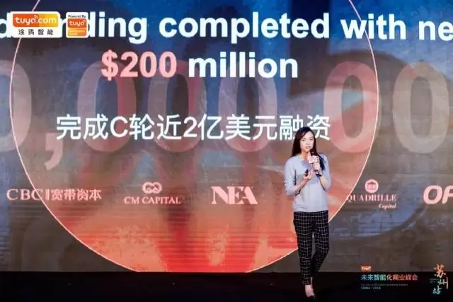 那竞丹:2018年7月,涂鸦智能完成了近2亿美金C轮融资,受到了全球各个国家主流基金的青睐。其中包括NEA、澳大利亚Futurefund、中金硅谷基金、Quadrille Capital以及宽带资本。