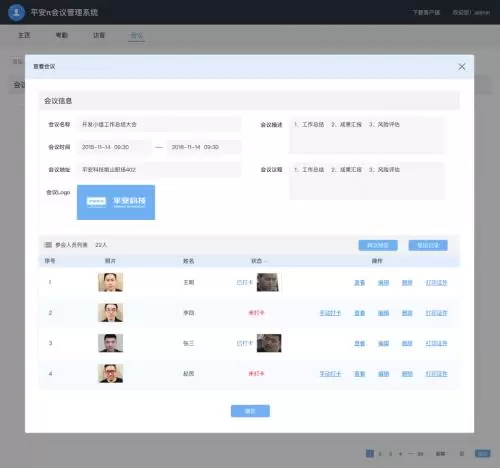 针对智能人员同行管理,平安科技推出了一款无感签到应用—平安π智能签到。这款应用实现了过程式签到,最快每30秒实现一轮无感点名,会议中早退、迟到、缺勤、中途离开时间过长等异常情况实时记录。