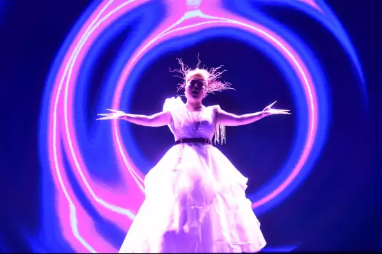 而在最神奇的表演环节中,当艺术家团队利⽤编程技术,让歌唱家的声音实时触发、控制视觉影像时,屏幕上的光线、波纹、亮片随着声音的高低而幻变,并使这些元素在现场完美交互,仿佛一个个科幻大片的片段不停刺激眼球,现场也开启了通往未来世界的大门,美轮美奂如梦中的情境,却又真实可见,一场声音和视觉碰撞出来的艺术火花,点燃了整个现场的科技氛围,AI魅力征服全场。